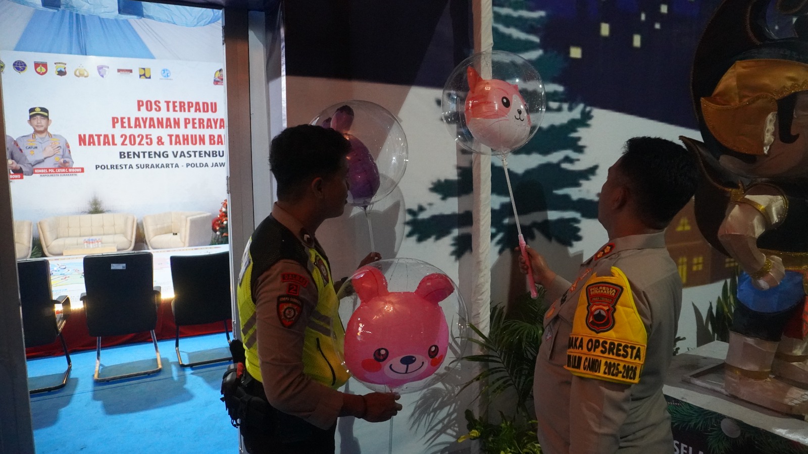 Mainan balon lampu tersebut selanjutnya dipasang di sekitar Pos Pelayanan Beteng Vasternburg, sehingga suasana pos terlihat lebih meriah, hangat, dan ramah, khususnya bagi masyarakat yang melintas maupun berkunjung ke pos pelayanan.