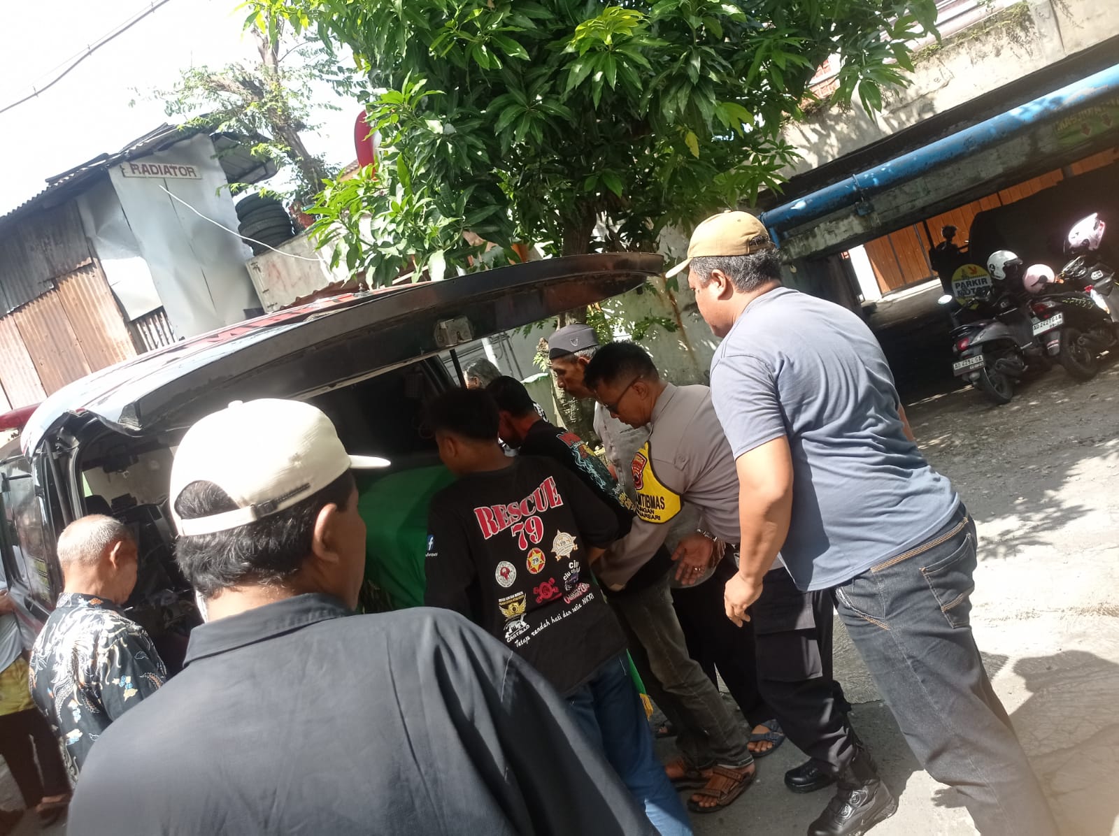 Polresta Surakarta – Polda Jateng– Bhabinkamtibmas Kelurahan Gilingan Polsek Banjarsari Polresta Surakarta Aiptu Bayu Adji bersama petugas piket Linmas melaksanakan kegiatan sambang lelayu di rumah duka almarhum Taufik yang beralamat di Rejosari RT 04/15, Kelurahan Gilingan, Kecamatan Banjarsari, Kota Surakarta.