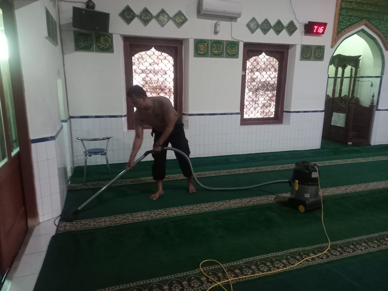 Dalam kegiatan tersebut, tampak anggota bersama marbot membersihkan area dalam dan luar masjid, termasuk menyapu halaman, mengepel lantai, serta merapikan perlengkapan ibadah.