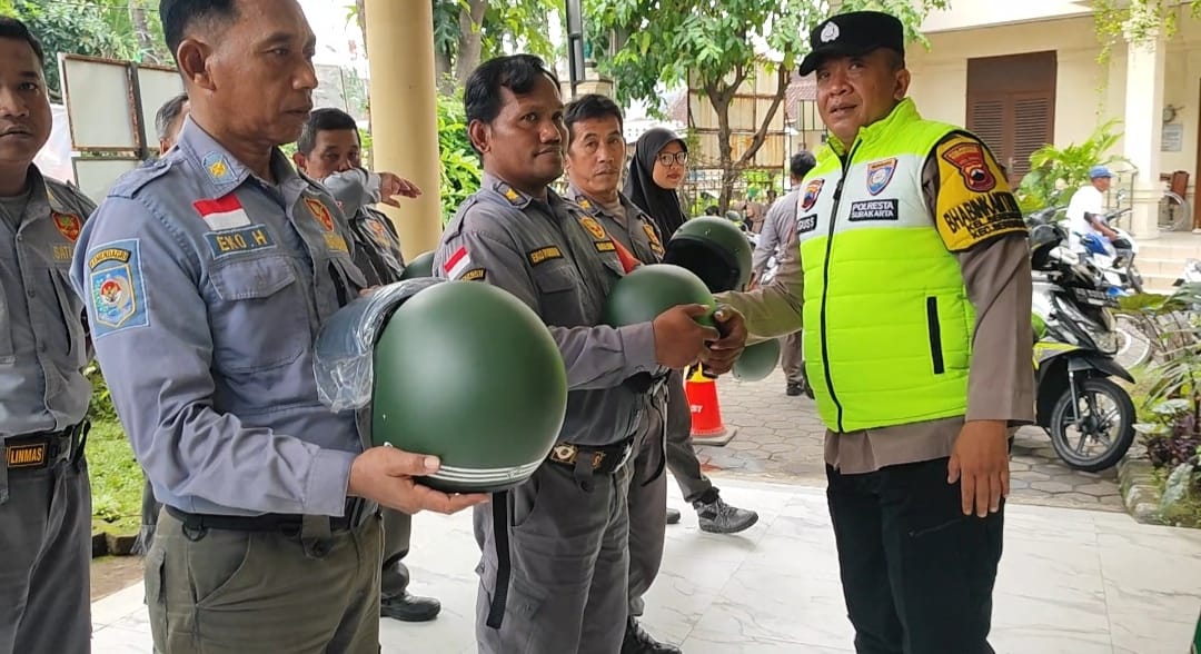 Polresta Surakarta – Polda Jateng – Bhabinkamtibmas Kelurahan Serengan,Polsek Serengan Polresta Surakarta Aipda Agus Sudiqbyo bersama Babinsa Serka Suwarno melaksanakan kegiatan pembinaan kamtibmas dengan memberikan bantuan helm kepada anggota Linmas, Kamis (11/12/2025).