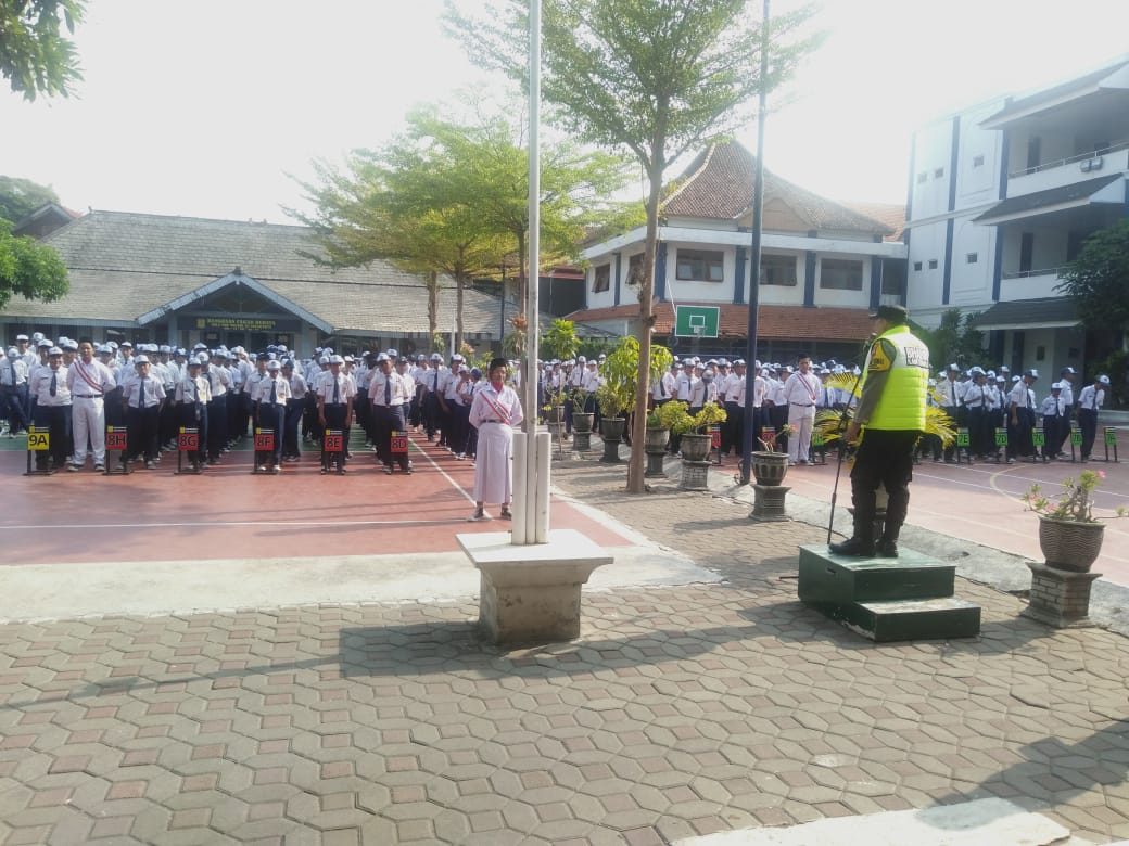 Polresta Surakarta – Polda Jateng – Bhabinkamtibmas Kelurahan Timuran Polsek Banjarsari Polresta Surakarta, Aipda Sumarno, melaksanakan sambang dan patroli ke SMP Negeri 10 Surakarta dengan bertindak sebagai pembina upacara, Senin (06/10/2025). Dalam kesempatan tersebut, ia menyampaikan berbagai pesan penting kepada para siswa untuk membentuk karakter disiplin dan bertanggung jawab.