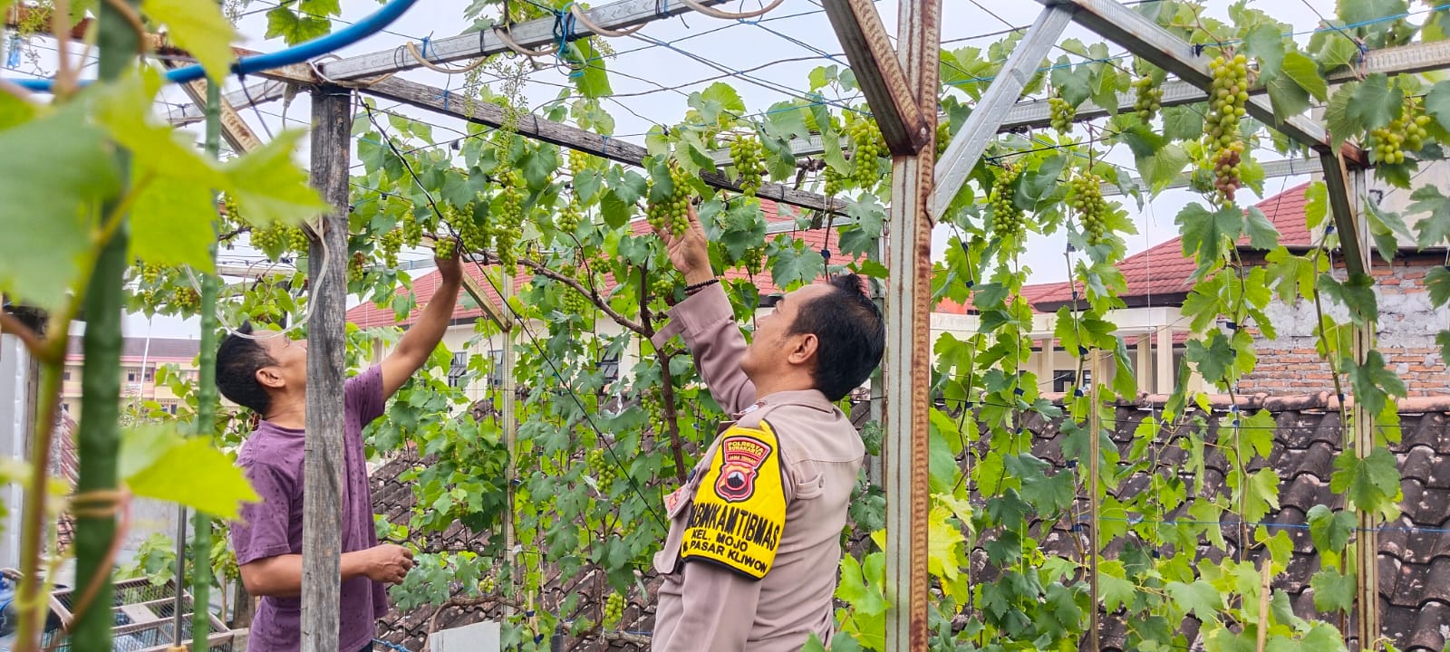 Dukung Ketahanan Pangan, Bhabinkamtibmas Mojo Berikan Motivasi Pembudidaya Anggur