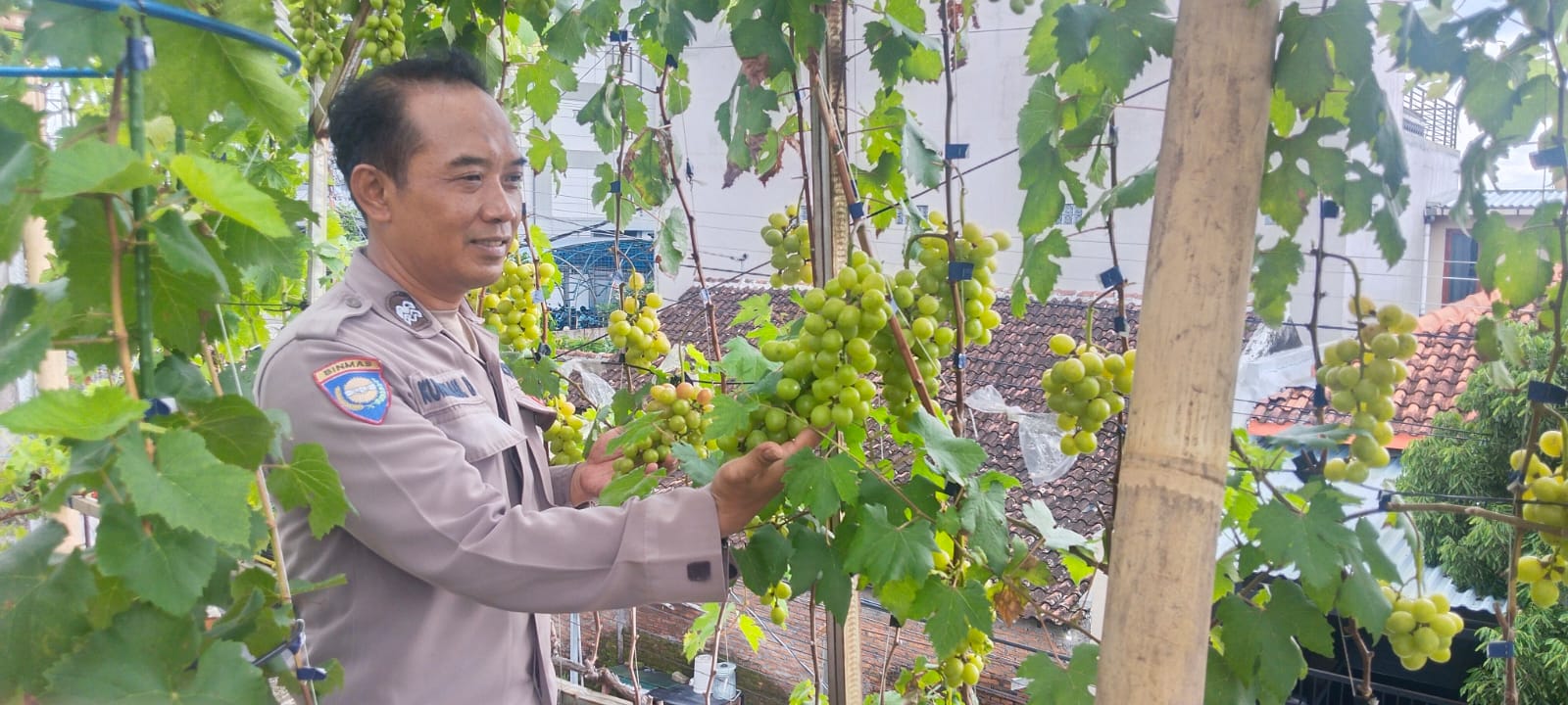 Polresta Surakarta- Polda Jateng – Dalam rangka mendukung program pemerintah di bidang ketahanan pangan, Bhabinkamtibmas Kelurahan Mojo Polsek Pasar Kliwon Polresta Surakarta, Aiptu Kurniawan D., melaksanakan sambang dan patroli wilayah binaan di rumah salah satu warga, Bapak Sari, yang merupakan pembudidaya buah anggur di RT 04 RW 03 Kelurahan Mojo, Kecamatan Pasar Kliwon, Kota Surakarta, Senin (10/11/2025).