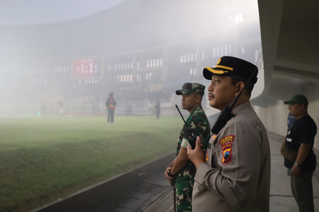 Pengamanan laga bergengsi tersebut dipimpin langsung oleh Kapolresta Surakarta Kombes Pol Catur Cahyono Wibowo, S.I.K., M.H., didampingi Wakapolresta Surakarta AKBP Sigit, S.I.K., M.H., serta Dandim 0735/Surakarta Letkol Inf Arif Handoko Usman, S.H. Ketiganya turun langsung ke lapangan untuk memastikan jalannya pertandingan berlangsung aman, tertib, dan kondusif.