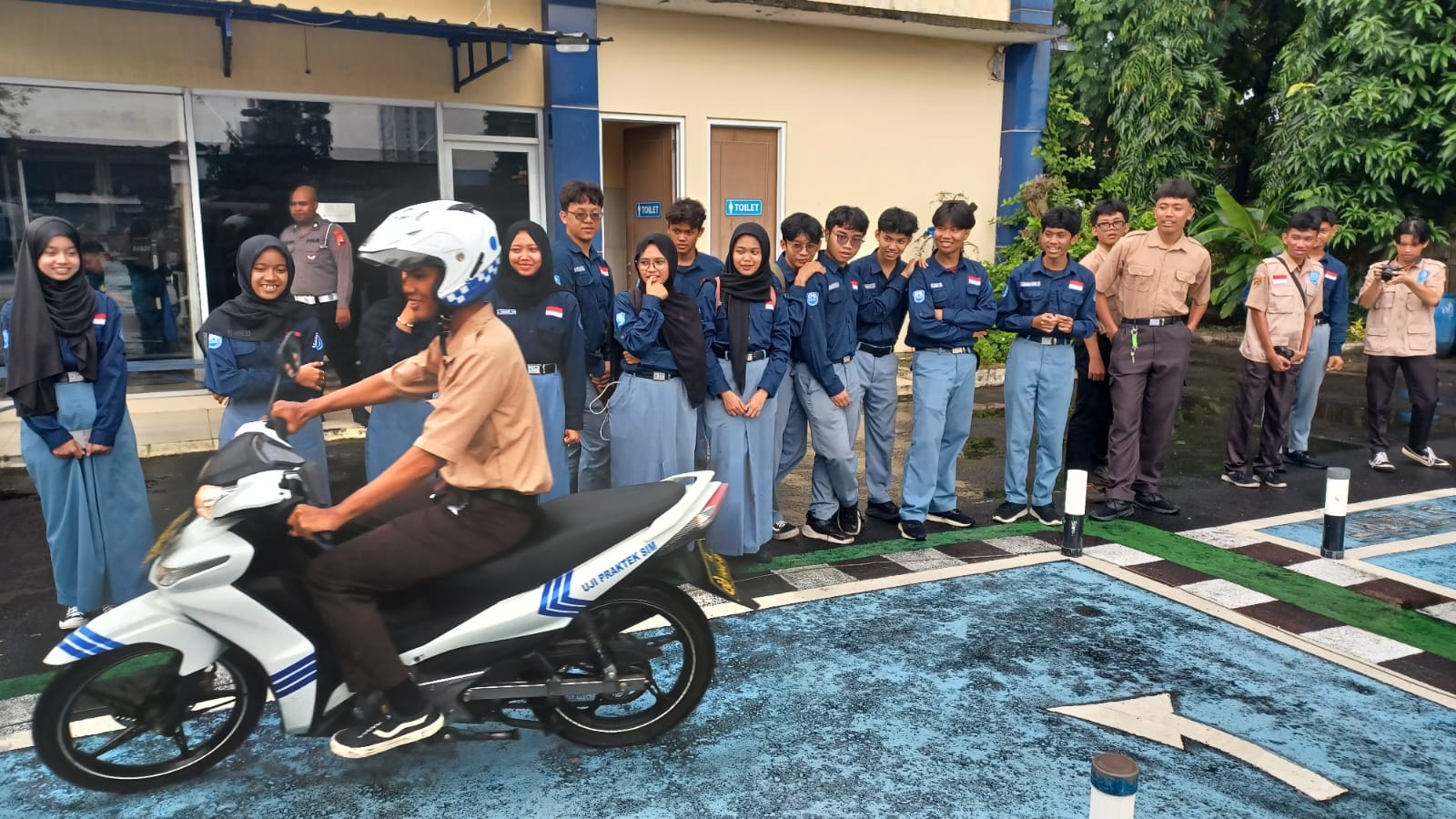 Siswa menerima penjelasan mengenai alur penerbitan Surat Izin Mengemudi (SIM), mulai dari pendaftaran hingga ujian. Selain itu, peserta diperkenalkan pada Audio Visual Integrated System (AVIS) sebagai sarana ujian teori, serta melihat langsung area ujian praktik.