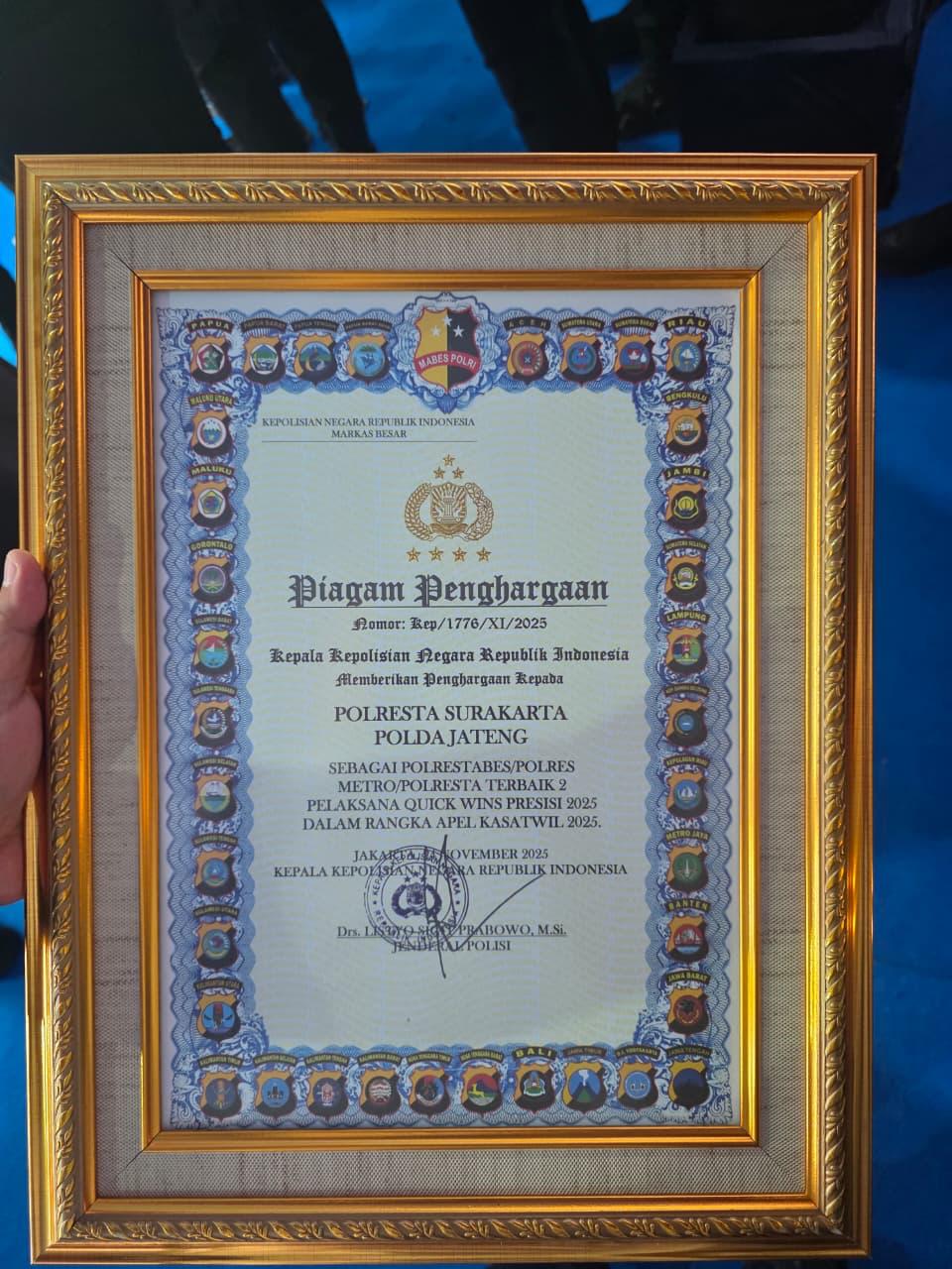 Dengan penghargaan ini, Polresta Surakarta semakin menunjukkan eksistensinya sebagai institusi Polri yang mampu menghadirkan pelayanan modern, humanis, dan cepat tanggap demi terciptanya keamanan dan kenyamanan masyarakat.