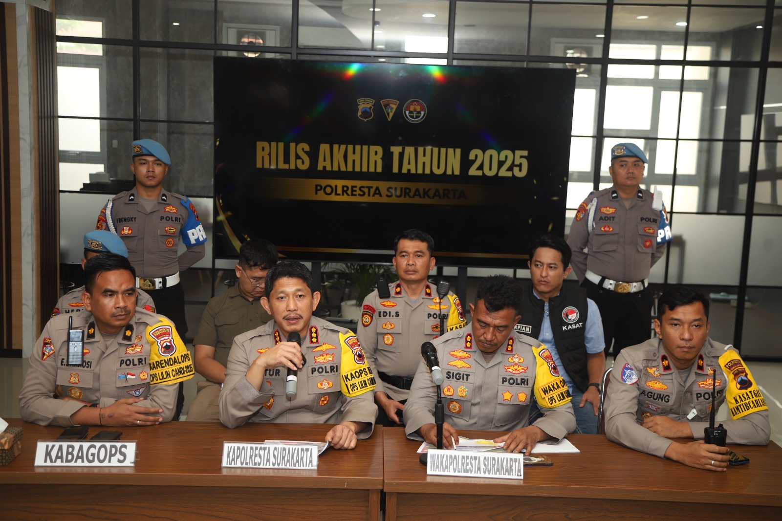 Di sisi lain, Polresta Surakarta mencatat capaian positif dalam penanganan kasus menonjol. Sepanjang tahun 2025, jumlah kasus menonjol tercatat sebanyak 189 kasus, mengalami penurunan signifikan sebesar 67 kasus atau sekitar 26 persen dibandingkan tahun 2024 yang mencapai 256 kasus. Penurunan juga terjadi pada tindak pidana ringan (Tipiring), dari 143 kasus pada tahun 2024 menjadi 142 kasus pada tahun 2025.