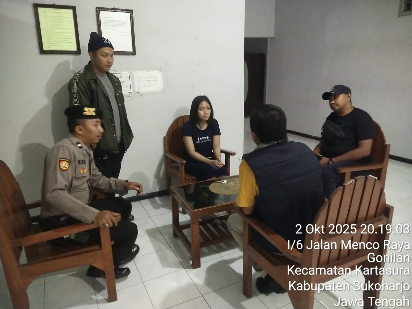 Menyikapi laporan tersebut, pada pukul 20.30 WIB, personel piket fungsi Polsek Laweyan Polresta Surakarta bersama personel piket fungsi Polsek Kartasura Polres Sukoharjo segera mendatangi lokasi kejadian di Rumah Kos Jl. Menco Raya, Kelurahan Gonilan, Kecamatan Kartasura, Kabupaten Sukoharjo.